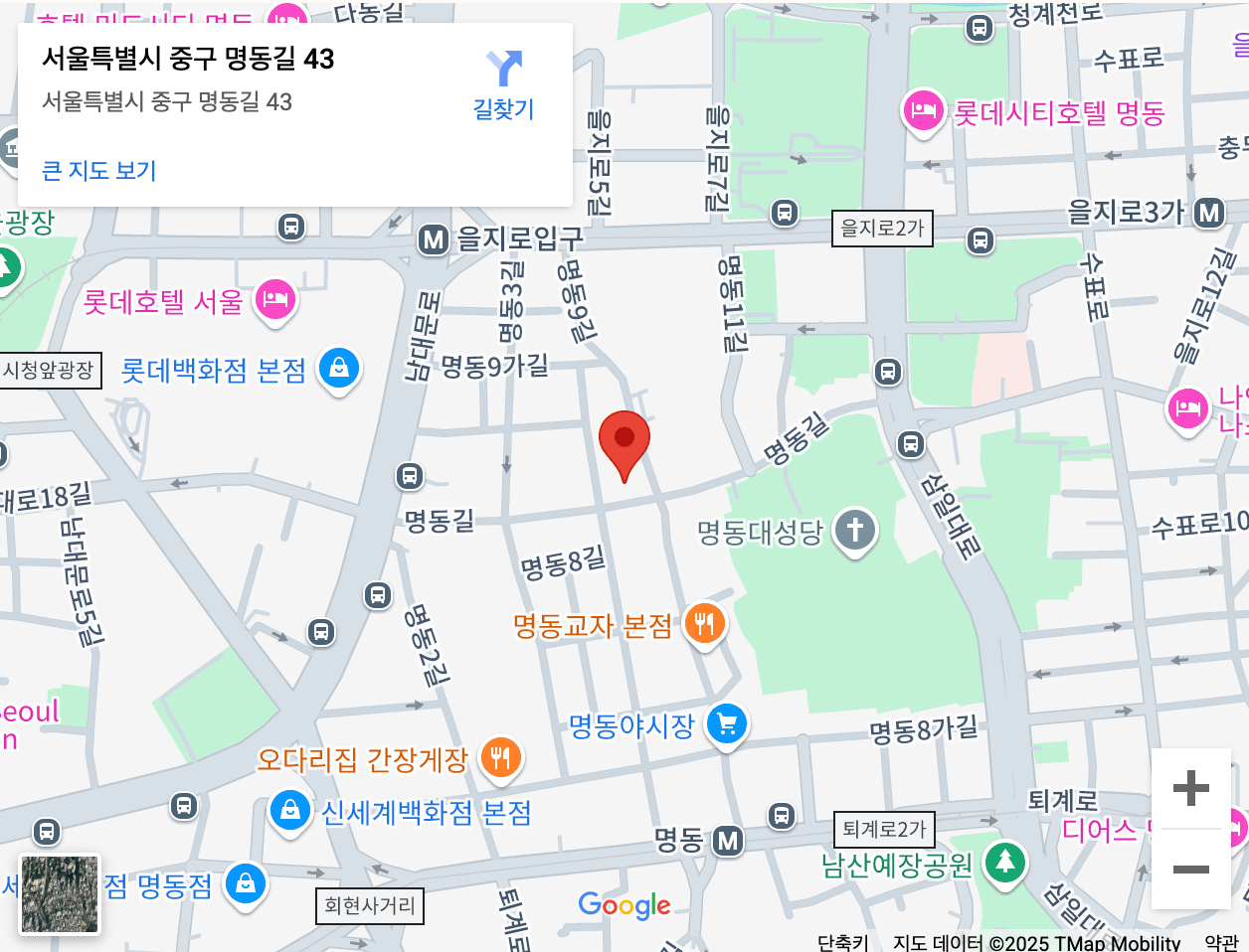 4F&5F, 43 Myeongdong-gil, Jung-gu, Seoul (consultation/reception)